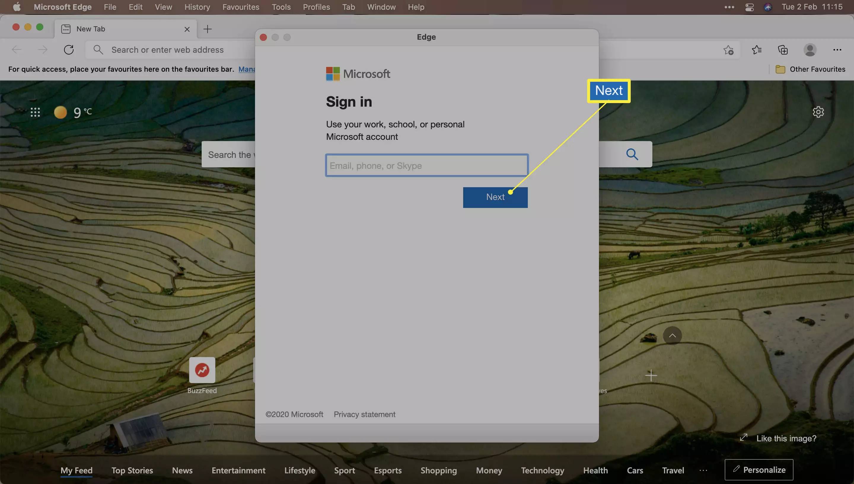 如果您选择将密码存储在Microsoft Edge上,则会自动重新登录。否则,输入密码,然后单击下一步。